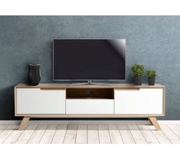 Zaiken Plus Meuble Tv Scandinave Blanc Brillant Et Decor Chene L