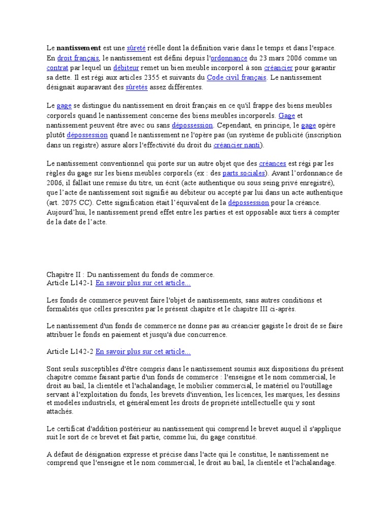 Synthese Sur Le Nantissement De Meubles Incorporels Legavox